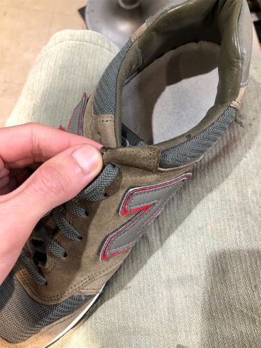 今回はニューバランスを、ほつれの補修でお預かり致しました。 1枚目の写真の様に、紐穴付近の縫いがほどけており、裏の生地(ライニング)が裂けている状態での持ち込みでした。 裏地が多少裂けていたので、元通りには修理出来ませんが、手縫いである程度目立…